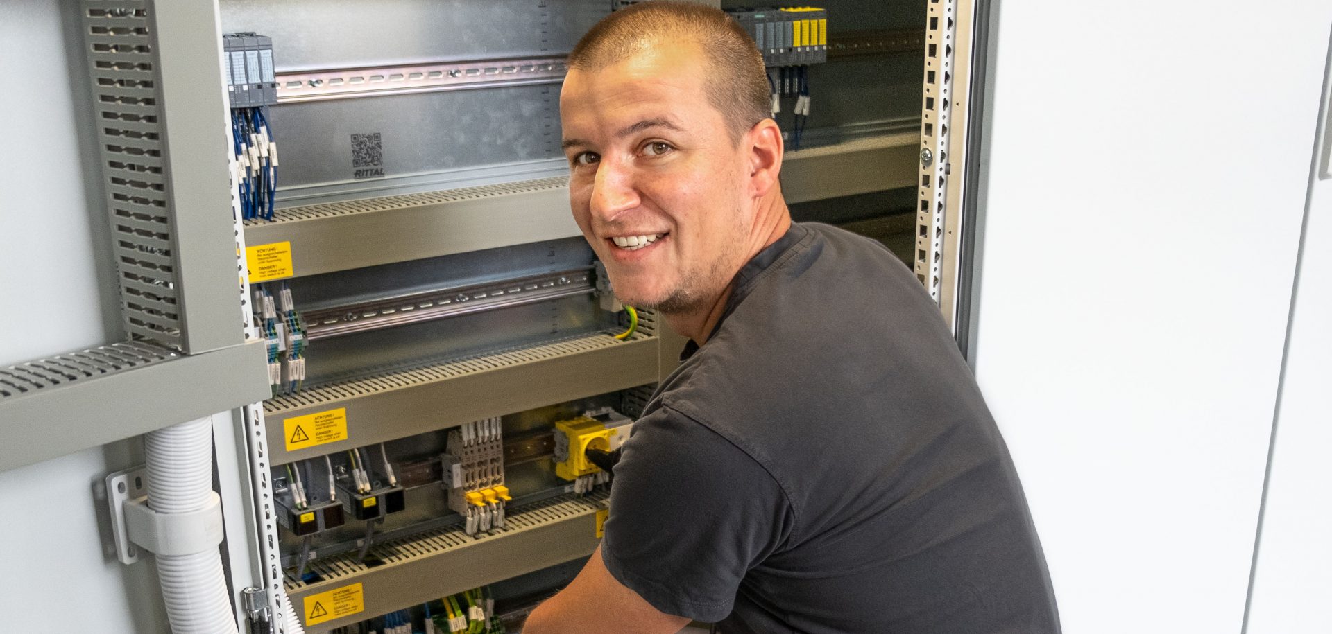 Zu Beginn meiner Ausbildung war unsere große Montagehalle noch sehr wenig besetzt und ich wurde sofort in den Schaltschrankbau mit eingebunden.